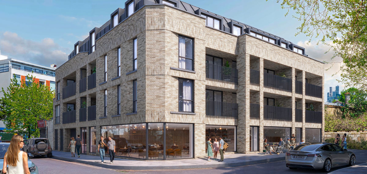 The development includes the creation of 14 private apartments alongside 297 square metres of office space, contributing to the thriving urban landscape.